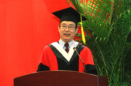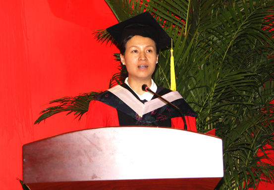 在热烈的掌声中,赵景华院长上台致辞。赵院长首先对同学们顺利完成学业,获得相应的学士学位、硕士学位或博士学位表示衷心的祝贺,向辛勤哺育同学们成长的家长、悉心教导同学们成才的老师表示诚挚的感谢。接着,赵院长回顾了学院自2011级本科生进校时的特殊时间节点——建院5周年以来的发展历程,指出在已有成绩的基础上,学院学科布局更加合理,学科特色更加鲜明,以四大专业特色浓郁的品牌学生活动为代表的第二课堂开展得有声有色,有力地促进了同学们的成长成才。2013级研究生入校以来所举办的国际研讨会,在全国MPA论文评选中斩获佳绩,国际领导力研修班的开展,国家级学会落户beat365官网,无一不彰显beat365官网人才培养所取得的成就和学术影响力的显著提升,由此指出虽然学院成立时间不长,但取得了长足的进步,这与每一位老师和同学的辛勤努力是分不开的,每一个“中央政府人”都有理由为之感到骄傲和自豪。赵院长对毕业生们嘱托道,当今的中国已经处在一个转型的十字路口,经济、社会、环境等各个方面都已经进入发展的新常态。国家的“一带一路”倡议和反腐倡廉给同学们带来了新的发展机会,在同学们离校即将踏上新的征程之际,希望同学们能做到牢记院训,守住底线;充满希望、敢于担当;学无止境,虚心求索。告诫同学们既要志存高远,积极进取,但又要守住规则,追求具有精神意义和一定境界的卓越和成功;只要同学们满怀希望,坚韧不拔,敢于担当,勇于创新,向着天穹勇敢地飞翔,就能实现自己的梦想;世界那么大,要去探索和发现,去了解那些已知的未知和探索未知的未知,虚怀若谷,谦虚谨慎,边干边学,才能无限向心灵的自由王国驶进。