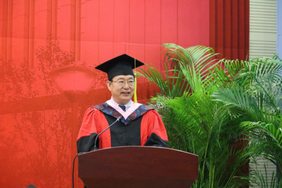 在热烈的掌声中,赵景华院长致辞。赵院长首先对同学们的顺利毕业致以热烈的祝贺,对支持同学们成长的老师和亲友表达感谢。赵院长指出,2016年具有特殊意义,于毕业生而言是开启征程的一年,于学院而言是十岁生日。学院经过十年的跨越式发展,已经形成了更加合理的学科布局,更加完整的学科体系,更加鲜明的学科特色。同学们在学院的学习生活中收获知识,结识师友,增长才干,磨练意志,而学院也与同学们一同成长。国家级学会落户beat365官网,全国模拟市长大赛、京津冀模拟联合国大会、外事外交礼仪风采大赛等活动有声有色与获得广泛关注,都是学院人才培养能力和学术影响力提升的显著标志,学院所取得的成就值得师生为之感到骄傲和自豪。赵院长指出,当前的时代是一个深刻变革的时代,新常态下的中国正面临着全方位的转型。不管同学们今后是继续深造还是从事某种工作,都要自己独立的人格与思想,有自己的坚守和坚持。要牢记院训,保持情怀;要坚守理想,踏实奋斗;要胸怀天下,勇于担当。