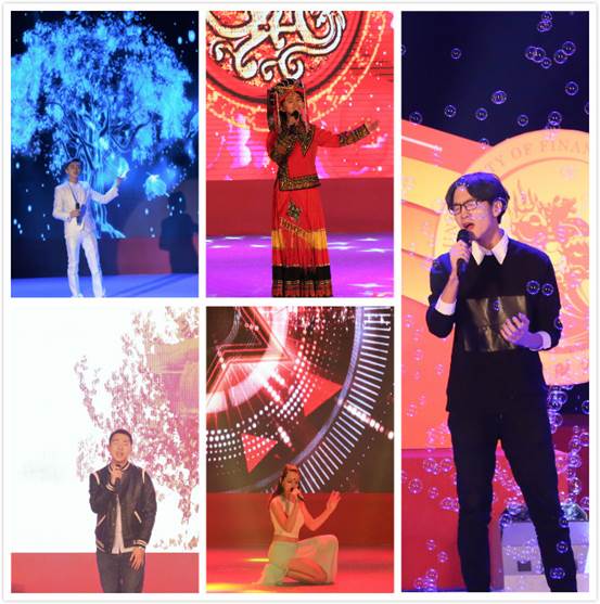 当大家还沉浸于诗歌朗诵的振奋激昂中时,十佳歌手与老师们又为大家带来了精彩绝伦的歌曲串烧:王雅姝的《纳西情歌》歌颂着蓬勃的爱情;郎靖南带来的《奔跑》则点燃了每个人内心激情的火把;张函情感浓郁地演唱《万物生》,唱响了青春的赞歌;留学生卡玛纵情展示充满活力的歌喉,用一首《Dum tektek》激荡起同学心中的青春摇滚梦;张爽校友别样演绎《爱相随》;院党委书记吕丽、校工会常务主席刘晓勤、国防经济与管理研究院副院长白丹、院长助理张剑、资源与环境管理系教师魏海涛、院教务干事宋红美等呈现经典《自由飞翔》;他们都用飞扬的歌声凝聚了政管学院艰苦砥砺的不变情怀!