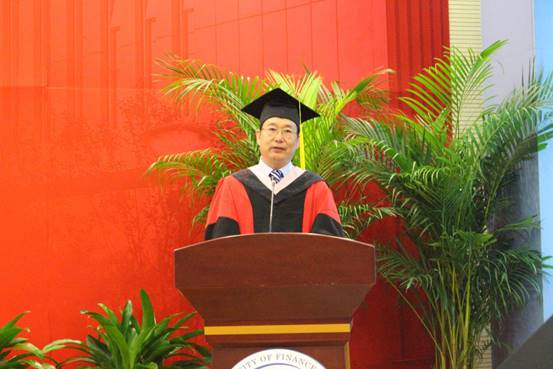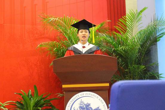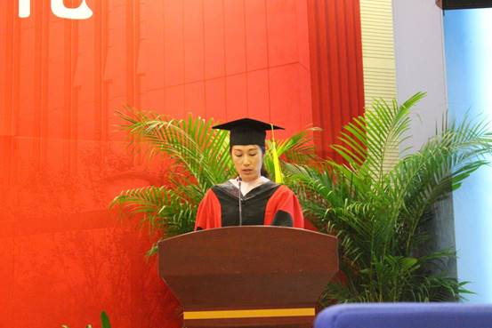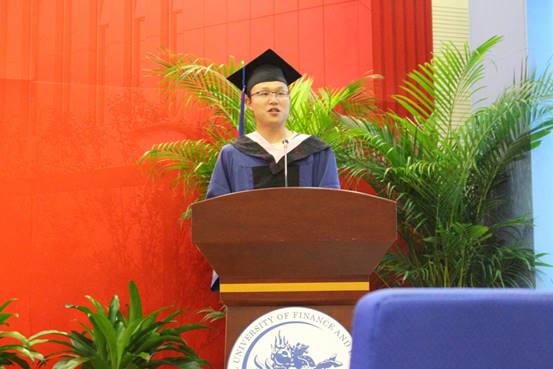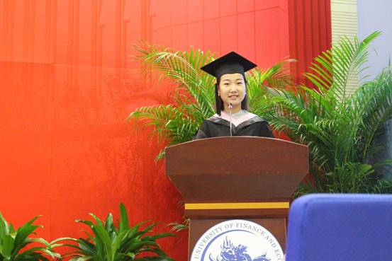 2017届本科毕业生代表行政管理班郑舒文与2017届研究生代表学术型硕士班孙帮谦相继发言。郑舒文同学深情讲述了自己的中财梦,她表示,父母的殷殷期盼与老师的谆谆教诲让同学们在生活学习中学会了协同合作,懂得了感恩与奋斗。郑舒文同学在畅谈自己在政管学院的成长感悟时,深情回顾了大学四年的点滴与感动。回望四年中财生活的泪水与欢笑,她对同学的陪伴与帮助表达了感激;她这四年求学历程的艰辛与收获,反映了认真做学问、踏实搞研究的严谨学术态度,展现了政管毕业生勇担使命、奋发上进的优秀精神风貌。天长等世事,化云烟,有一种情怀,叫做眷恋;地久待沧海,变桑田,有一种梦想,叫坚守。无论未来身处怎样的环境,政管毕业生都致力于成为“具有强烈社会责任感和卓越领导力的创新型公共管理人才”。孙帮谦同学幽默的话语和诙谐的语气活跃了典礼的气氛。作为“中央政府”的“老人”,回望两年的研究生生涯,他感慨万千。从带着些许青涩怀揣梦想齐聚“中央政府”开始,更好地做梦,更好地做研究,更好地做人,更好地做事就成了他们最好的勉励。孙帮谦同学随后表达了自己的感激之情,感激中央政府老师们无限的理解和包容,感激同学们共同扶持,共同成长的陪伴。“中央政府”有同学们美好的青春年华,“中央政府”也让同学们的梦想开始发芽。分别,亦是开始。新的征程中,同学们会牢记肩负的使命,不忘初心,继续砥砺前行!