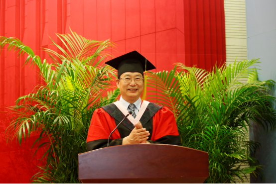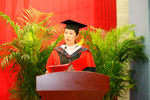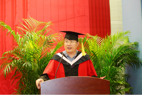 典礼进行第四项,赵景华院长致辞。赵院长对毕业生们圆满完成学业表示热烈的祝贺,对毕业生的父母、师长、亲人和朋友致以崇高的敬意和衷心的感谢!在英国beat365官方网站学习的几年中,同学们付出了汗水、辛勤、努力与真诚,收获了知识、理想、成长与友谊;在思想政治上逐步走向成熟,在学业、研究上取得长足进步,同学们的历史使命感和社会责任感变得更加强烈,国际战略视野和领导与管理能力不断提升,这些成长都让学院倍感欣慰和骄傲。院长指出,同学们正处在一个伟大的时代,新一轮科技革命在世界范围内展开,面向未来,如何捕捉先机让中国从前几次科技革命的旁观者、参与者,向新一轮技术革命的引领者转变,是摆在我们每个人面前的重任。在同学们即将踏入新时代的社会,开启人生新时代之际,赵院长向大家提出三点期望:志当存高远,心当存澄洁,永远保持学习和思考的热情,永葆探求新知和追求真理的活力,长存刚正不阿之正气、兼容并蓄之大气和坚持真理之骨气;坚守责任之心,勇于奉献担当,在工作岗位上勇挑重担、攻坚克难,用自己的聪明才智为国家的强盛、为人民的幸福、为中华民族的振兴、为人类文明的进步做出自己的贡献;保持豁达心态,包容万象世界,以豁达的心态直面高潮与低谷,以宽容的性情去对待失落和坎坷,始终保持沉着、理性、平和的心态。最后,赵院长寄语在座同学:满怀希望的去开拓自己的人生新时代,铭记中财的美好时光,勤勉努力,砥砺前行!