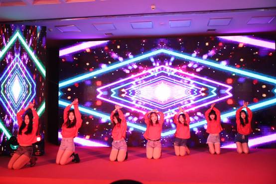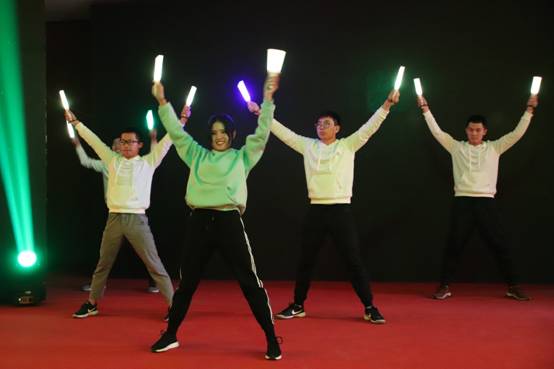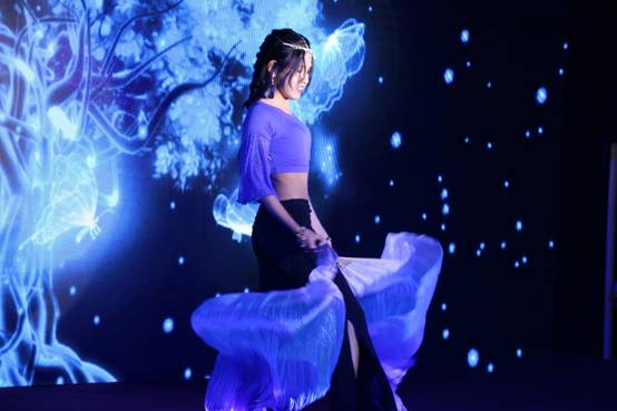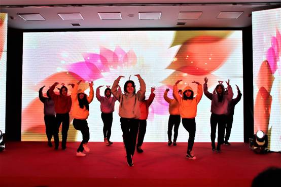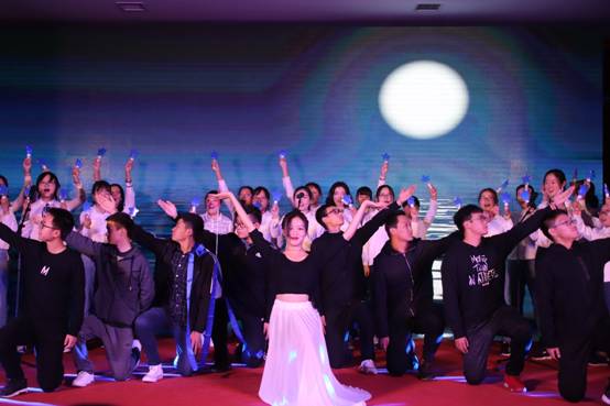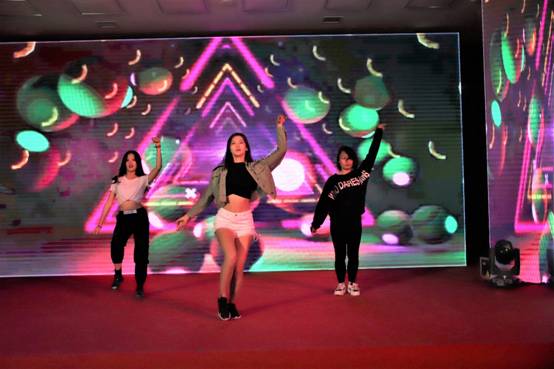 联欢会伊始,活力四射的开场舞WakaWaka调动了全场的氛围,荧光灯下的舞者做着整齐有力的动作,柔美而不失坚毅,富有异域色彩的服饰更为联欢会增加了几分颜色。迎新联欢会就此拉开帷幕。