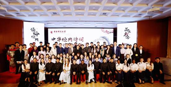 国际友谊队吟唱《留学生遇见中国诗词》。中华诗词的魅力之大,令国际友人都为之陶醉、为之折腰。中华经典文化灿若星河,是沟通中国与世界的桥梁。