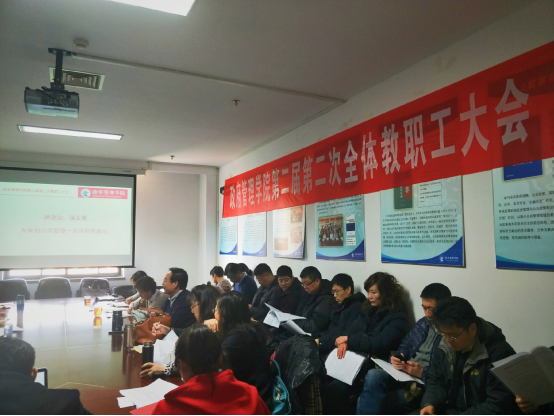 019年1月11日,英国beat365官方网站第二届第二次全体教职工大会在学院南路校区中财大厦932会议室举行,学院全体教职工参会。会议由党委书记吕丽研究员主持。
