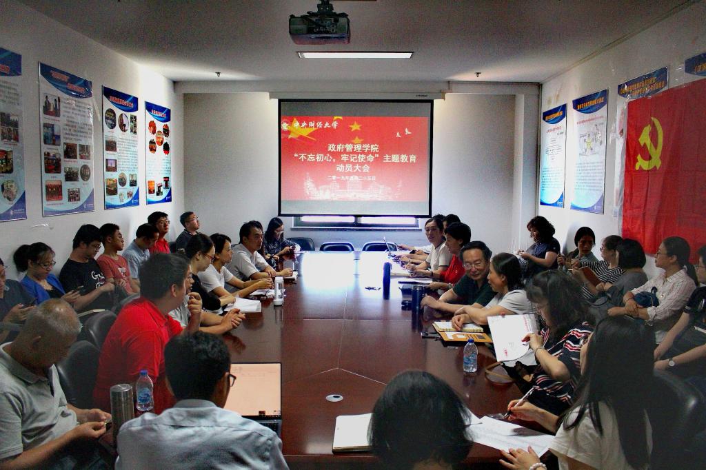 吕丽同志首先解读了“守初心、担使命、找差距、抓落实”的总要求,明确了要紧扣“五个”目标,坚持“四个贯穿始终”,力戒形式主义,不折不扣抓好落实。在开展主题教育活动时,要牢记“聚焦主题主线,突出问题导向,坚持以上率下,做到贯穿结合”四个基本原则,从教育部对高校的要求出发,结合学院实际着力整改学院的薄弱和贫瘠方面。同时,明确了学院主题教育的“五个结合”,一是把主题教育与庆祝新中国成立70周年结合起来和庆祝学校建校70周年结合起来,二是与全面推进“双一流”建设和学院公共管理一级学科博士点的申报结合起来,三是是与立德树人结合起来,四是与培育“龙马奋进”的中财文化和“正气浩然、上善若水”的学院文化结合起来,五是与提高学院管理服务水平结合起来,营造爱党爱国爱校爱院的浓厚氛围。
