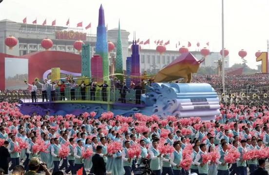 我们是9月30号凌晨出发的,大概是早上7点钟左右到达我们集结休整的地方,但正式行动是步行方阵结束后才开始的,在此之前我们二十多号人围着志愿者看着他手机上放的直播,真的是“现场直播”。当时印象最深的是习近平总书记说的“没有任何力量能够撼动我们伟大祖国的地位,没有任何力量能够阻挡中国人民和中华民族的前进步伐。”当时大家的情绪都在一点一点的积累,当我们的BGM响起的时候,我们所有的情绪一股脑的宣泄了出来,所有人冲着天安门城楼的方向,用着自己全部的能量,为我们祖国的富强欢呼,为我们人民的幸福呐喊。能参与这次群众游行活动,我感到无比自豪和骄傲!此生无悔入华夏,来世仍作中国人!