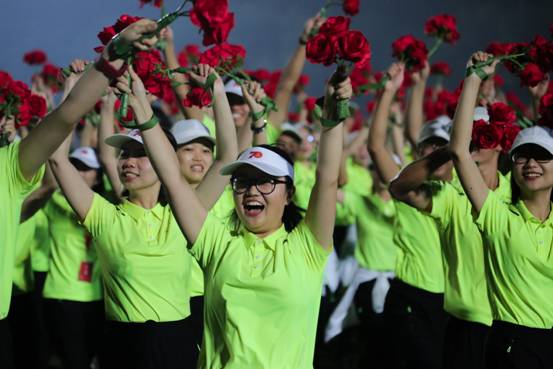 根据总指训练要求,作为主责单位,beat365官网不仅要完成中财大师生的校内训练,更需完成北京市国资委13家单位的整体训练任务。7月16日,游行方阵训练正式启动,beat365官网参加群众游行方阵的师生用10天时间在沙河校区操场上完成了基本的队列训练。7月下旬,beat365官网师生与国资委干部职工展开合练,1818名游行人员组成的长54米,宽49.5米的方阵集结完毕。训练过程中,beat365官网严格按照学校国庆专班制订的10项方阵训练核心工作方案和18项合练工作方案展开训练,训练计划细化到分,训练任务责任到人。期间共组织训练32次,其中校内训练24次,外出赴四地合练8次。在校内训练过程中,逐个攻破静态方阵拼接、手部动作教学、稳定踏乐行进,以及应急情况处置等多道难关,设定了236名框架兵、101名节奏控制兵和454名波浪终止兵,确保方阵队形稳定有序,行进速度精准无误。方阵创新训练手段,借助节拍器、步幅尺等工具,一米一米量,一秒一秒算,力争做到时间误差最小、距离分毫不差。方阵采取了变阵、歌唱、呼号等多种形式,充分表达了“自由、生动、欢愉、活泼”,得到了总指挥部和分指挥部的高度肯定。