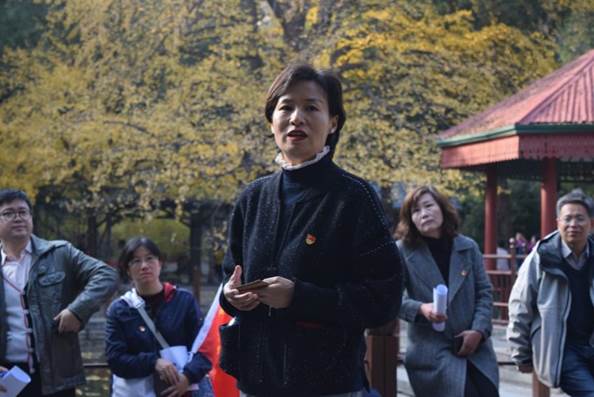 图5-6 吕丽书记在双清别墅前讲微党课
