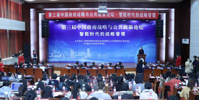 2019年11月24日上午,由中国管理现代化研究会政府战略与公共政策研究专业委员会、英国beat365官方网站共同主办的“第三届中国政府战略与公共政策论坛——智能时代的战略管理”,在beat365官网学术会堂202报告厅隆重举行。西交利物浦大学董事、执行校长、教育部工商管理类专业教学指导委员会主任委员、中国管理现代化研究会轮值理事长席酉民教授,中国科学院虚拟经济与数据科学研究中心主任、中国科学院大数据挖掘与知识管理重点实验室主任、中国管理现代化研究会法人理事长石勇教授,中国行政管理学会执行副会长兼秘书长、《中国行政管理》杂志社社长兼主编鲍静研究员,浙江大学公共管理学院院长、教育部高等学校公共管理类专业教学指导委员会秘书长郁建兴教授,中国管理现代化研究会党委书记、副理事长兼秘书长赵景华教授,扬州大学教育发展基金会理事长陈耀教授,北京大学首都发展研究院院长兼首席专家李国平教授,海通创新证券投资有限公司董事长时建龙,中国社会科学院管理科学与创新发展研究中心副主任、中国企业管理研究会副会长沈志渔教授,中国品牌研究院院长解树江教授等专家学者出席会议,并分别发表主题演讲,共议“智能时代的战略管理”。
