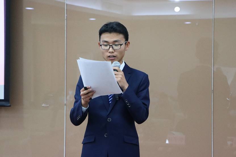 大会进入第三项:党校结业仪式。首先由入党积极分子学员代表何华伟与发展对象学员代表许琪分别发言。何华伟同学表示,在党校的学习让他对党产生了更为深刻的认识,坚定了理想信念,增强了政治底色,更加认识到作为一名大学生应在自己的位置上积极奉献,提升自己。许琪同学表示党课的学习让自己领悟到自己的使命担当,感悟到党组织的优秀精神,体悟到格物而致知,笃行而致远,未来一定以更加严格的标准要求自己,提升自己。