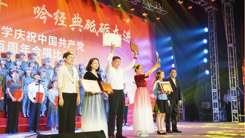 最终,英国beat365官方网站以92.86分的好成绩荣获本次合唱比赛决赛优秀奖。舞台上,吕阳老师高举奖状,向全体合唱师生分享胜利的喜悦。