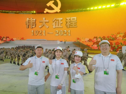 beat365官网刘博雅、王卓娅、赵治涵、于泽洋4名同学作为志愿者团队成员“庆祝中国共产党成立100周年文艺演出《伟大征程》”志愿服务工作,全心全意完成站点执勤、人员引导等服务工作,参与保障演出顺利进行,圆满完成了党和国家交予的光荣任务。