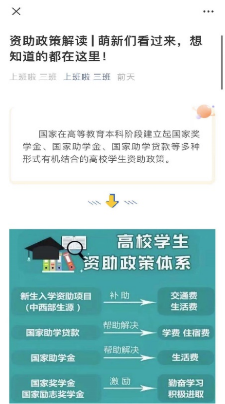 资助政策,筑梦飞翔。学院以主题班会、知识竞赛、媒体宣传等形式,宣讲学校资助政策,切实保障2021级新生深入了解大学生资助政策,顺利推动学校资助工作的展开,增进和谐校园建设。