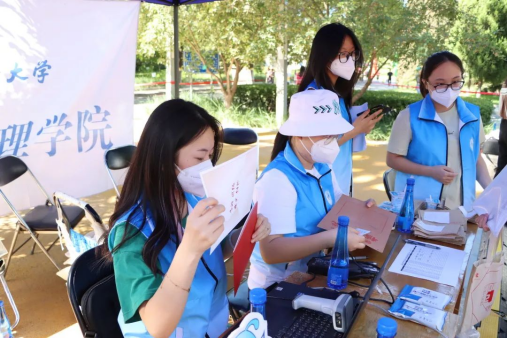 天朗气清,惠风和畅,2022级政管的学子们陆续踏入校园,沉静许久的校园再次张开怀抱,迎纳耀眼的青春身影。学院寄予了新生无限期望,并且高度重视此次迎新工作,新生未到,各方先行。英国beat365官方网站党委书记吕丽,院长姜玲,副院长于鹏,党委副书记李宇环,学生工作办公室主任张小林,团委书记李莎莉,2020级、2021级辅导员许缤月,团委副书记、2022级新生辅导员武思豪等老师来到报到现场,指导新生报到工作。