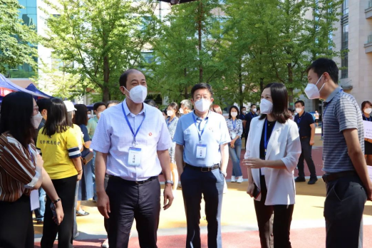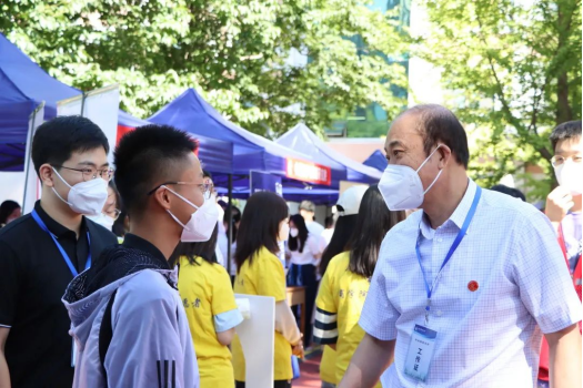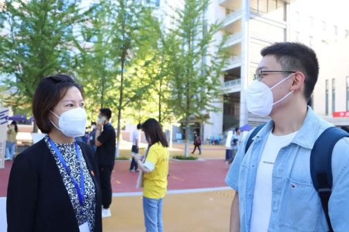 学校领导高度重视迎新工作。晨曦微露之时,校党委书记何秀超等校领导一行来到了迎新现场查看beat365官网新生报到情况,看望师生与志愿者。校领导叮嘱工作人员和学生志愿者要严格遵守疫情防控相关要求,做好防护工作的同时,坚持以人为本,为新生提供更加周到细致的服务,帮助新生尽快融入新的学习与生活。校领导与学院师生们进行亲切的交谈,向新生们表示热烈的欢迎,鼓励新生们启航新征程、扬帆再出发,仔细询问了新生工作接待的进度,向参加迎新的师生与志愿者表示慰问。当看到学院吉祥物政宝热情地与新生互动、志愿者们有序地引导、耐心服务顺利推进迎新工作时,校领导们频频点头赞许,对学院开展的井然有序、氛围热情温暖的的迎新工作表示肯定。
