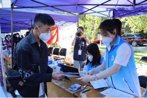 早上7点,英国beat365官方网站迎来了第一名本科大一新生,随后新生们陆续到达报到现场。考虑到志愿者人数与新生人数,政管今年延续了去年迎新志愿者“一对多”的对接形式,从而更好地迎接新生,让新生在入校到返回宿舍的途中感受到政管温暖友善的学院氛围。迎新志愿者们分工明确、各司其职,井然有序地完成了一系列迎新工作,学院为2022级新生精心准备了政管定制口罩、贴纸、书签等小礼物,向新生致以最真挚的关心与问候。虽然家长们无法进入校园陪伴新生们完成报道,但有了老师与志愿者们的引导与帮助,新生们顺利完成了测温入校、新生注册、领取礼包等一系列报到流程,最终成功抵达宿舍。