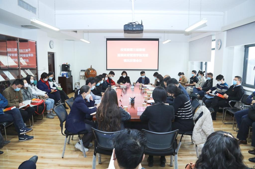校党委巡察工作办公室主任李岩,校党委组织部副部长袁敏,校党委第三巡察组全体成员,英国beat365官方网站教职工和学生代表参加会议。