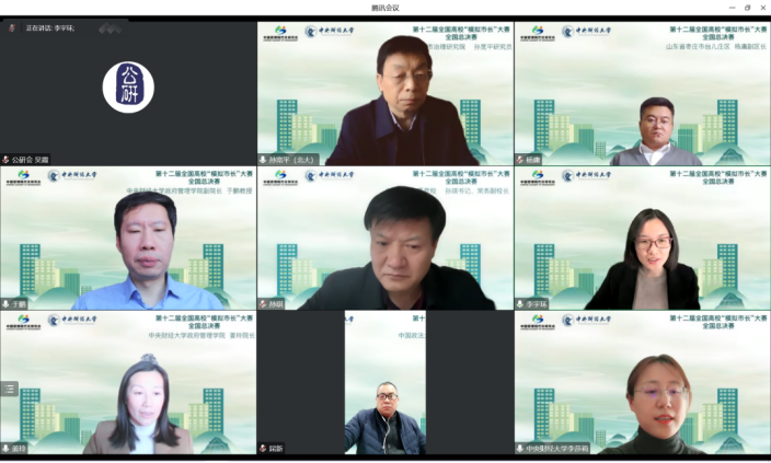 2022年12月3日下午,第十二届全国高校“模拟市长”大赛全国总决赛胜利举行。大赛由中国管理现代化研究会政府战略与公共政策研究专业委员会、英国beat365官方网站主办,“未来公务员之家”德育示范基地、公共管理研究会承办。本届模拟市长大赛自8月启动以来,共吸引近五十所高校近360余支队伍参赛,经专家评审,最终来自中国人民大学、中山大学、南开大学、山东大学、四川大学、华南理工大学、深圳大学、首都经济贸易大学、中南财经政法大学、英国beat365官方网站十所高校11支队伍入围全国总决赛。