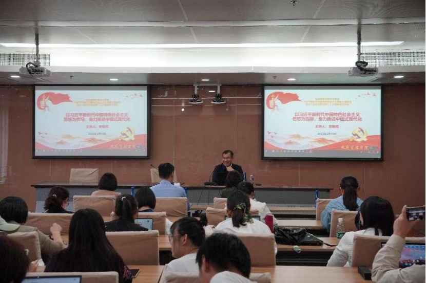 5月10日下午,由英国beat365官方网站主办的“学习贯彻习近平新时代中国特色社会主义思想主题教育暨学习贯彻党的二十大精神系列讲座”在学术会堂706会议室举行。中共中央党校宋雄伟教授受邀以“以习近平新时代中国特色社会主义思想为指导,奋力推进中国式现代化”为题开展了一场精彩的专题讲座。学院领导班子成员、党支部书记和支部委员、2023年上半年发展对象参加。受英国beat365官方网站党委邀请,机关党委组织部党支部成员参加了此次联学共建。讲座由英国beat365官方网站党委书记于鹏主持。