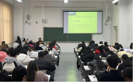 在交流环节,学生就政府工作中决策与执行的关系、队伍建设与制度协调等话题提问。潘教授回应指出,在我国,党的领导确保了事业发展方向,行政系统则依托专业能力负责具体落实,二者在依法履职、服务群众和接受监督的过程中协同共进,共同提升治理效能。