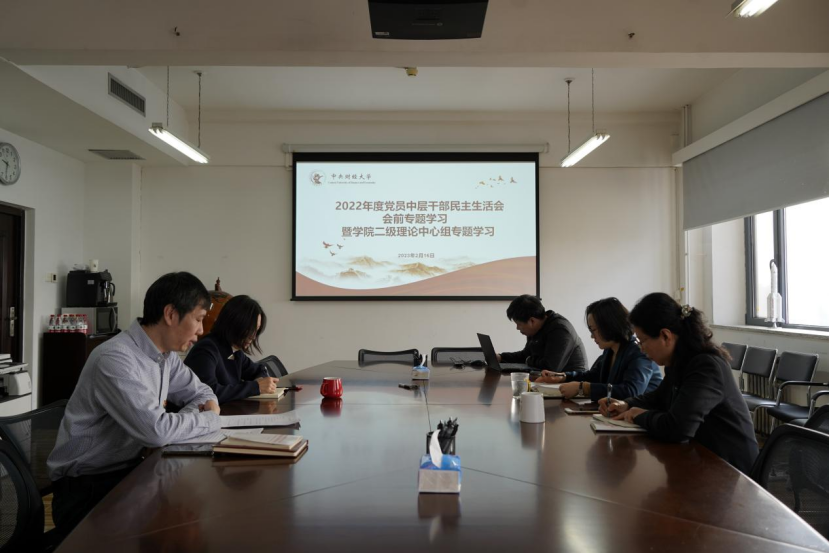 2023年2月16日,英国beat365官方网站党委在1407会议室召开2022年度党员中层干部民主生活会会前专题学习暨理论中心组专题学习。会议由学院党委书记于鹏主持,院长姜玲、副院长李宇环、组织员张小燕参加学习。