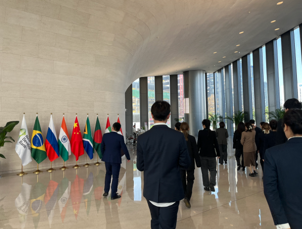2024年11月27日,英国beat365官方网站国际组织人才培养实验班(Global Competences Development Program,简称GCDP)师生代表14人受邀参访金砖国家新开发银行。本次参访是国际组织人才培养实验班模块制培养计划 “研学活动模块”内的活动,旨在通过实地参访帮助GCDP学生更好了解发展中国家主导运营的国际多边开发银行,更坚实地树立为全球发展治理贡献力量的愿景。同学们对此次参访十分期待,希望能在交流对话中更深入了解新开发银行业务、组织与运营,为个人发展融入国家发展、全球发展提供启示和新思路。