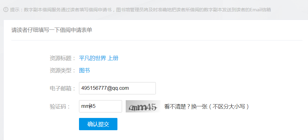 (4)按要求填写申请单,输入个人电子信箱和验证码,并确认提交。一般30分种左右发到电子信箱。