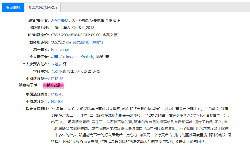 暂无记录:表示无此书的电子书