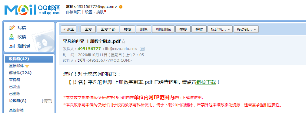 请读者在48小内,在校园内登录个人电子信箱下载:点击链接下载。