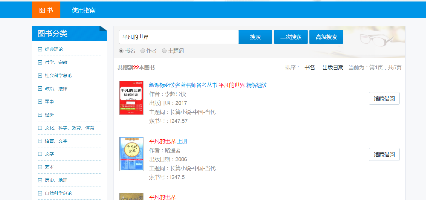 3.输入查询书名或作者或主题词