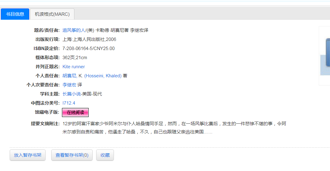 (1)在线阅读:表示有此书的电子书,可下载。